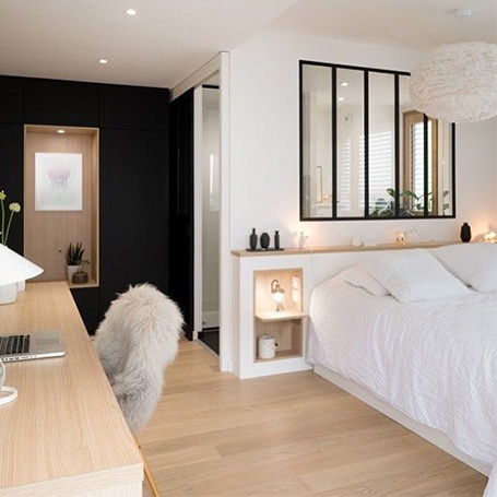 Johanna partage son conseil : laissez la lumière circuler dans une pièce multifonctionnelle ! Une suite parentale avec un dressing intégré